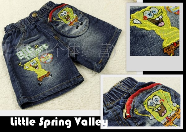 海绵宝宝刺绣儿童牛仔裤 Sponge Bob Pant 海绵宝宝可爱洗水牛仔短裤,款式时尚洋气,男女皆宜。